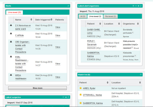 Surveillance systems play a key role in helping to conserve and steward the effectiveness of existing treatments, as well as supporting infection control practices by allowing clinicians to monitor infection scenarios and prescribe through the provision of bespoke triggers. By bringing together information from disparate sources, the system notifies practitioners of critical infection-related events, which aids clinicians in making targeted and timely interventions that prevent and control infections, and encourages the appropriate use of antibiotics to positively impact patient outcomes.
